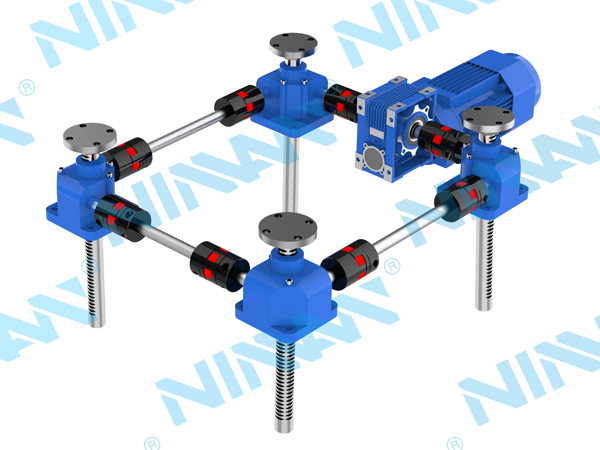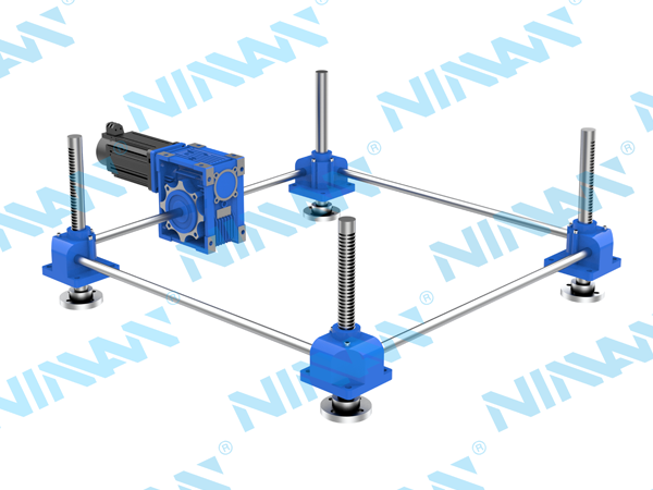 工作原理;依靠齿轮和齿条之间的联动配合,保证四个或多个支撑点同步升降,进而实现工作平台平稳升降,四个支撑点的同步误差最小可达0.5mm